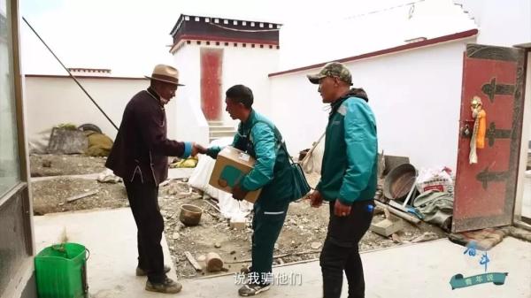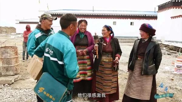 藏族阿媽排著隊等待領包裹,壯實的漢子來取網購的棉服,村委會主任迫不及待地翻看新到的報紙……