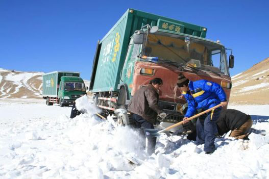 桑布說:“過去阿里交通極不便,一個人在偏遠的無人無村落的路上堵幾天是常事。我常常是自己鏟雪,掃清路障,我也因此學會了修車……我會用聽廣播、聽音樂來排解孤獨,也會自娛自樂地大聲歌唱。我始終有一個信念,就是只要我在,我的郵件便安全。我會盡最大的努力、用最快的辦法解決眼前的困難,把郵件送達目的地?!?/p>