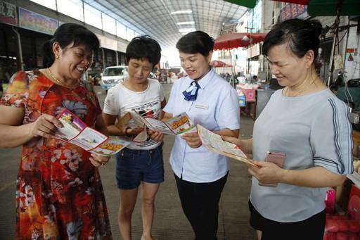 潘春蓮在果蔬批發市場宣傳郵儲銀行信用卡權益活動