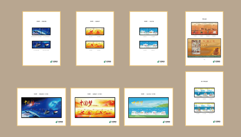第七展柜展示的是“中國(guó)夢(mèng)”系列郵票。中國(guó)郵政于2013年開始啟動(dòng)“中國(guó)夢(mèng)”郵票系列,分三組展示國(guó)家富強(qiáng)、民族振興和人民幸福。