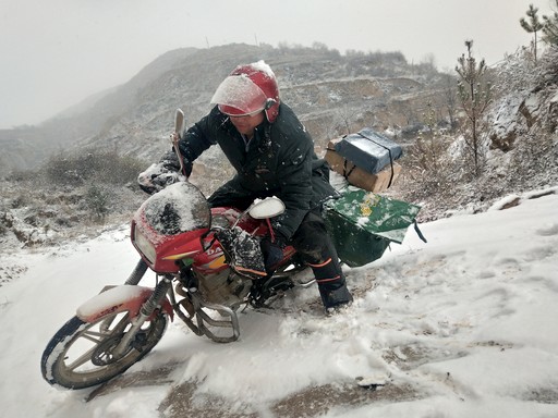 連日來,甘肅多地普降大雪,連續的風雪惡劣天氣給正值高峰的“雙11”投遞工作帶來了嚴峻考驗,尤其是在路況很差的鄉村地區。但投遞員們不懼風雪,全力以赴,準確、及時地將一件件包裹送到用戶手中,至11月19日,甘肅郵政“雙11”進口郵件妥投率為95%。圖為11月16日,慶陽市華池縣城壕鎮郵政所鄉郵員趙元瑞冒雪投遞。 □徐向釗 攝影報道