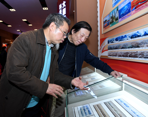 一說到郵票,兩位老者的話匣子就打開了。“郵票作為‘國家名片’,意義非常重大,但設計難度也大,一般來說,藝術家喜歡揮灑,喜歡在創作中發揮自己的想象力,但恰恰郵票設計具有嚴謹的科學性。”許仁龍介紹,在《長城》郵票中,地理方位一點都不能馬虎,長城的敵樓上有幾個射箭孔都要有出處、有講究;此外,郵票設計還要進行嚴謹的歷史考證,長城綿延一萬多公里,經過那么多省、市,沿途取景就需要仔細推敲,聽取專家意見,最終還要畫成一個藝術作品。“在設計郵票時要充分體現藝術巧妙的融合性,要突破時空,令人有身臨其境之感,這又是一個難點。”時隔兩年,許仁龍回憶起郵票創作過程還是感受頗多,“長城是改革開放的一種精神象征,中國郵政將它繪制成郵票長卷是一種突破。現在,這套郵票長卷在‘偉大的變革’展覽中展出,我深感榮耀和自豪,在此也要感謝改革開放給我們藝術創作帶來的新氣象。”