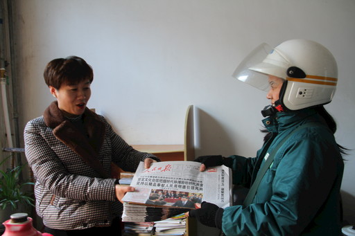 全國兩會期間,為方便廣大用戶和人民群眾更好地了解兩會消息,山東省茌平縣郵政分公司城區投遞部投遞員徐紅,每天早早地就等候在投遞部,報紙一分揀完畢,她便騎上車出發投遞。“你們來得真及時,我這就把報紙分發下去。”茌平縣委黨校傳達室的工作人員如是說。據了解,兩會期間,徐紅每天投遞《人民日報》等黨報100余份。□張培穎 攝影報道