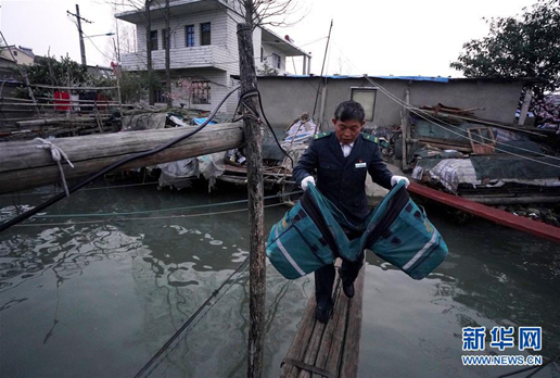 3月30日,唐真亞帶著郵包來到碼頭,準(zhǔn)備出發(fā)送郵件。 新華社記者 季春鵬 攝