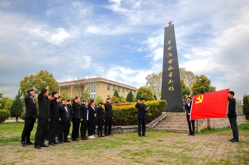 “我志愿加入中國共產(chǎn)黨,擁護黨的綱領,遵守黨的章程,履行黨員義務,執(zhí)行黨的決定……”蕩氣回腸的入黨誓詞,響徹革命烈士紀念碑周圍。4月1日,廣西壯族自治區(qū)梧州市分行全體黨員聚集在珠山革命烈士紀念碑前,舉行“緬懷革命先烈,繼承革命傳統(tǒng)”清明祭掃烈士活動。在祭掃儀式上,梧州市分行全體黨員面向紀念碑莊重肅立,向革命先烈敬獻花圈,認真傾聽珠山革命烈士紀念碑的歷史。隨后,黨員們向革命烈士紀念碑深深地鞠了三次躬,并舉起右手,集體重溫入黨誓詞。儀式結(jié)束后,全體黨員繞場一周,瞻仰著紀念碑,表達著對烈士的崇高敬仰。
