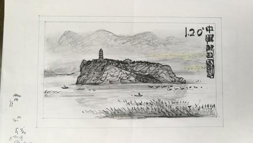 《鄱陽湖》郵票設(shè)計(jì)草圖。
