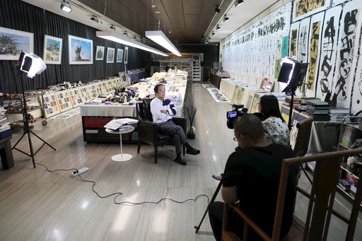 韓美林在他的工作室接受本報(bào)記者采訪。趙明震 攝