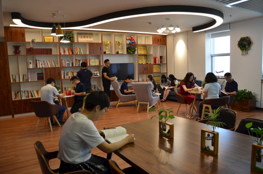 在“職工書屋”內閱讀的員工。
