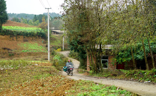 鄉郵員行駛在田野鄉間。記者  韓靜樺  攝
