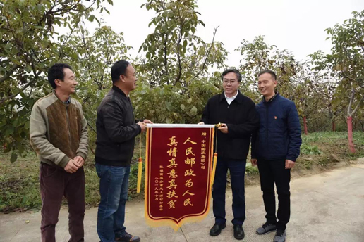 在上河村核桃林,劉愛力一行聽取了集團公司派駐上河村開展扶貧工作的第一書記王海珍關于核桃種植項目的情況介紹,詢問了當地核桃種植以及群眾收益情況。當他了解到通過開展電商銷售及林下種植,當地貧困戶戶均年增收3600元以上,高興地連聲說好。他同時對郵政扶貧干部長期以來的辛勤工作表示感謝,鼓勵他們要克服困難,要在駐村工作的過程中有所收獲。“感謝郵政扶真貧!”上河村村委會代表激動地向劉愛力贈送了寫有“人民郵政為人民 真情真意真扶貧”字樣的大紅錦旗,不住地表達著對于郵政扶貧工作和郵政扶貧干部的真誠感謝。