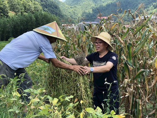 陳澤維幫助貧困戶收獲黃豆。李蓉 攝