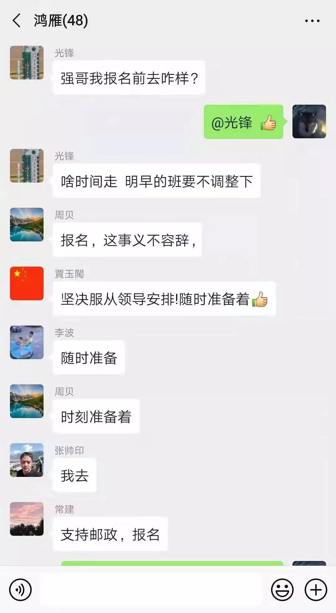 “堅(jiān)決服從安排!隨時(shí)準(zhǔn)備著”“報(bào)名,這事義不容辭”“堅(jiān)決支持,我報(bào)名”……1月26日,在南陽(yáng)市分公司網(wǎng)運(yùn)條線微信群里,當(dāng)?shù)弥枰獌擅救ノ錆h運(yùn)送防疫物資時(shí),許多人紛紛踴躍報(bào)名,請(qǐng)戰(zhàn)前線,表示要以自己的實(shí)際行動(dòng)為抗擊疫情貢獻(xiàn)力量。