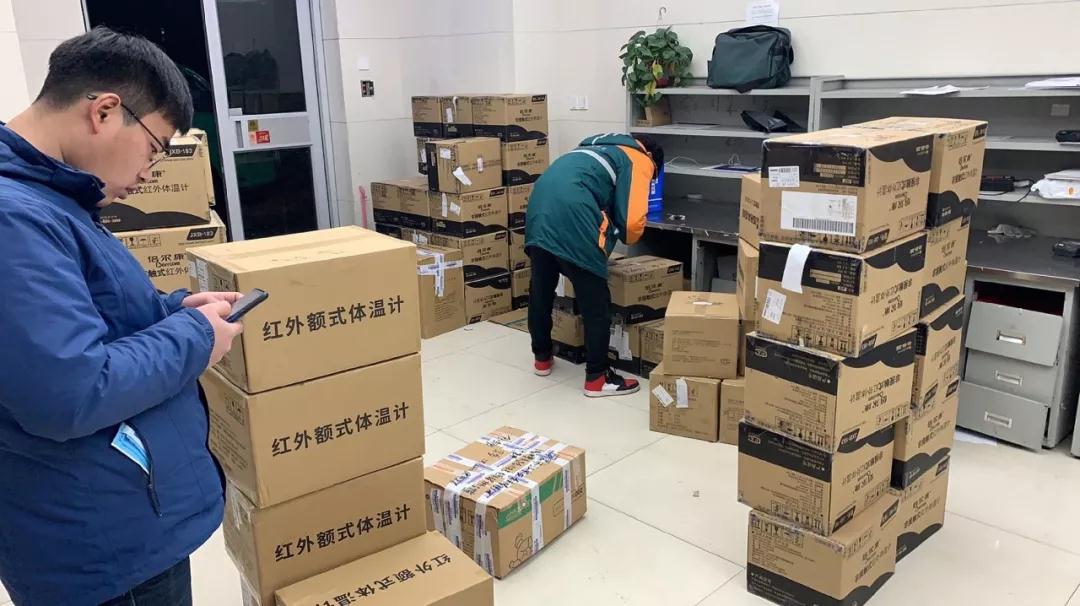 1月22日,常州市分公司鳴凰營投部主動對接某塑業(yè)科技公司時了解到,對方將有6萬只口罩發(fā)往全國各地(70%發(fā)往武漢)。時間緊,客戶急,常州市分公司緊急協(xié)調(diào)組織,確保耗材到位,并全力協(xié)調(diào)人員幫助客戶集中包裝,形成近3000個標件,確保當天趕發(fā)。鄭陸營投部攬投員利用休息日上門與藥企客戶對接,攬收14箱溫度計。之后一周,該企業(yè)還將連續(xù)有寄件需求。其他營投部通過組織摸排,也陸續(xù)有醫(yī)藥企業(yè)提出寄遞相關(guān)防疫藥物、用品等需求。