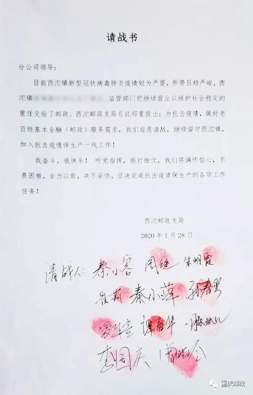 請戰(zhàn)書上,有郵政人11枚鮮紅的指印