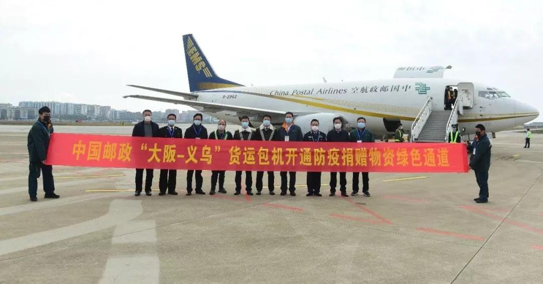 2月13日上午10點50分,中國郵政“大阪—義烏”郵航貨運包機經過2個小時的飛行,運載第一批抗疫捐贈物資順利飛回義烏機場,經過海關監管放行后,這批救援物資馬上裝上郵車運送至國內疫情防控一線。這是“大阪—義烏”郵航貨運包機開通海外捐贈綠色通道后運輸的第一批抗疫物資,包含了由寧波企業、澳大利亞華僑等捐贈的各類物資,其中澳大利亞華僑捐贈給衢州市紅十字會價值2500余萬日元的口罩共計30萬只等物資。