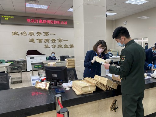 在采訪中,記者看到了北京機要局最近收到的兩封感謝信,分別來自武漢某部隊和北京市人民檢察院某分院。武漢某部隊感謝北京機要局對疫情防控文件的應急處理工作。接到從北京寄往武漢某部隊涉及疫情的機要文件后,北京機要局第一時間與湖北省機要局溝通協(xié)調(diào),打破了僅工作日投遞機要件的常規(guī)處理模式,3小時內(nèi)將文件妥投到位。“當疫情迅速蔓延之時,你們克服各種困難,把我們所需的機要文件及時投遞,為我們研究擬制疫情處置方案發(fā)揮了作用,特向你們表示衷心感謝。”武漢某部隊在感謝信中寫道。