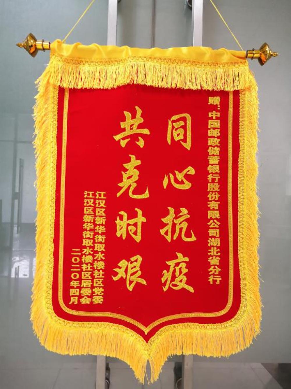 近日,江漢區(qū)新華路取水樓社區(qū)授予郵儲銀行湖北省分行黨員突擊二隊“抗疫”錦旗,表彰其在疫情期間與廣大社區(qū)居民“同心抗疫、共克時艱”的特殊貢獻。