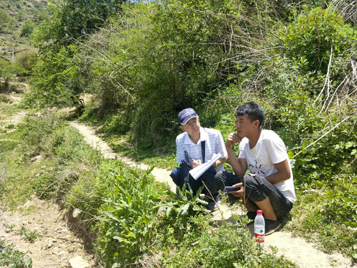高旭闖在田邊調(diào)查詢問(wèn)農(nóng)戶外出務(wù)工、子女就讀、種植養(yǎng)殖等情況。