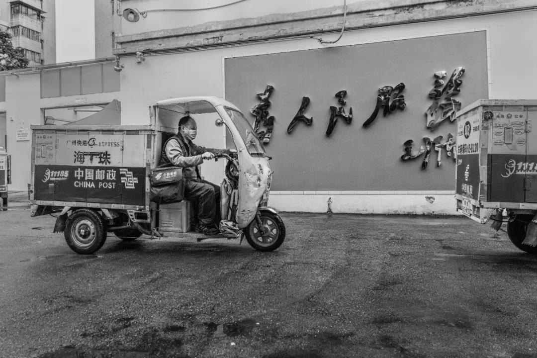 自疫情發生以來,廣州郵政人從沒有停止過為人民群眾派送郵件報刊,一直踐行著“人民郵政為人民”的神圣使命。作品拍攝于2020年3月廣州市郵政分公司曉港西馬路投遞部作業現場。