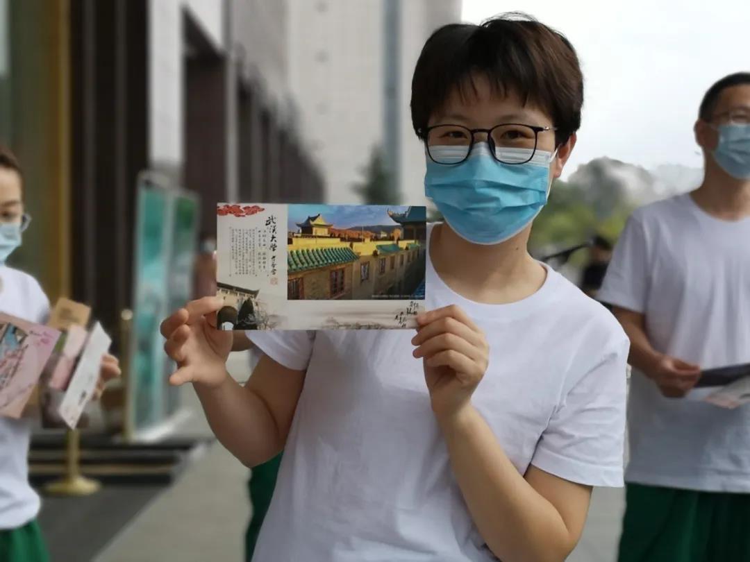 3月26日下午,人民日報新媒體中心、武漢市郵政分公司、武漢武昌區(qū)疫情防控指揮部共同舉辦“同舟共濟 感恩有您”為援漢醫(yī)療隊贈“文”活動,醫(yī)療隊員們對武漢風光明信片愛不釋手。圖為醫(yī)療隊員展示自己最喜歡的武漢大學明信片。