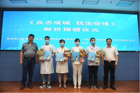 7月2日,由陜西省衛生健康委員會、陜西省郵政管理局、中國郵政集團有限公司陜西省分公司聯合主辦的《眾志成城 抗擊疫情》郵折捐贈活動在西安成功舉行,陜西1208名抗疫醫務人員獲贈該紀念郵折。