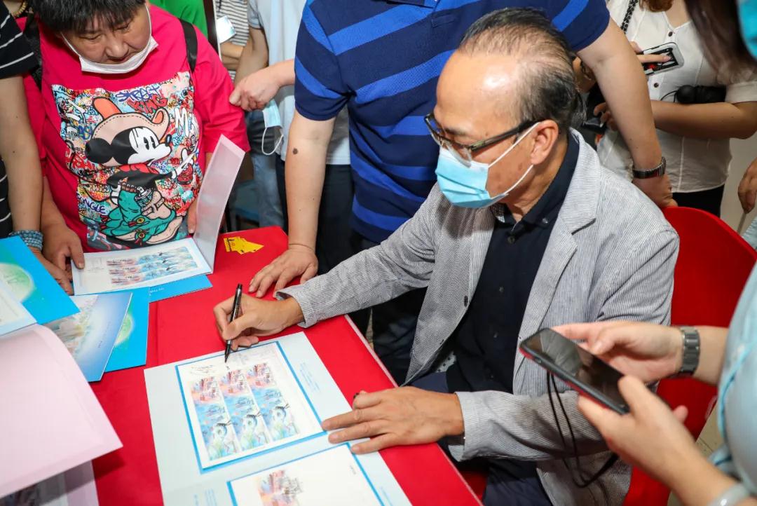 活動現場,郵票設計師韓秉華為廣大上海郵迷簽名留念,上海郵政提供郵品銷售、加蓋紀念戳等郵政服務。中國郵政集團有限公司郵政業務部總經理王志奇、上海市浦東新區區委宣傳部部長唐勁松出席本次活動,并共同為郵票首日封揭幕。