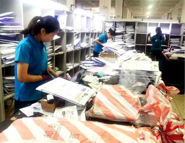 在太原郵區(qū)中心局,面對(duì)格口多、郵件量大、時(shí)限要求高等現(xiàn)狀,分揀人員采取先按省際路向分、再按經(jīng)轉(zhuǎn)關(guān)系細(xì)分的方式進(jìn)行處理,進(jìn)一步提升分揀效率。針對(duì)轉(zhuǎn)運(yùn)人員每5分鐘交運(yùn)一次待分揀郵件的情況,該局郵件預(yù)處理、普服組分揀人員應(yīng)急增援,爭(zhēng)分奪秒進(jìn)行郵件的處理趕發(fā)。業(yè)務(wù)檢查人員同步對(duì)出口的學(xué)生檔案郵件趕發(fā)情況進(jìn)行全過(guò)程督導(dǎo)管控,及時(shí)協(xié)調(diào)人員開(kāi)展異常情況處理,確保各頻次郵件發(fā)運(yùn)嚴(yán)格按計(jì)劃執(zhí)行。每晚22:00,學(xué)生檔案乘上趕航郵車,通過(guò)郵航專機(jī)于次日送達(dá)全國(guó)25個(gè)省278個(gè)城市。