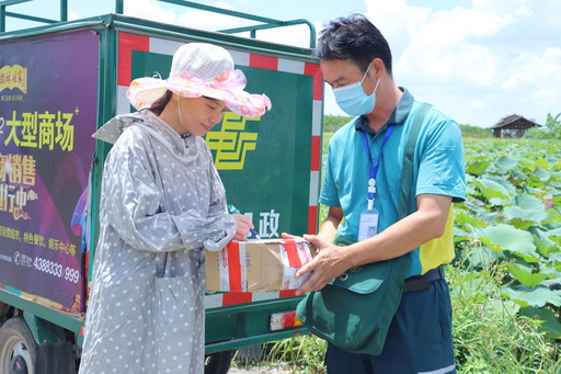 7月22日,是我國(guó)農(nóng)歷的大暑節(jié)氣。近日,廣西壯族自治區(qū)貴港市氣溫持續(xù)攀升,最高溫度達(dá)37攝氏度。為了把郵件及時(shí)、快速、準(zhǔn)確地送到群眾手中,郵政員工在炎炎烈日下,電話不離手,腿腳不停歇,確保郵件安全送達(dá)。圖為湛江鎮(zhèn)郵政支局投遞員到荷花田里送郵件。 □覃東新 攝影報(bào)道