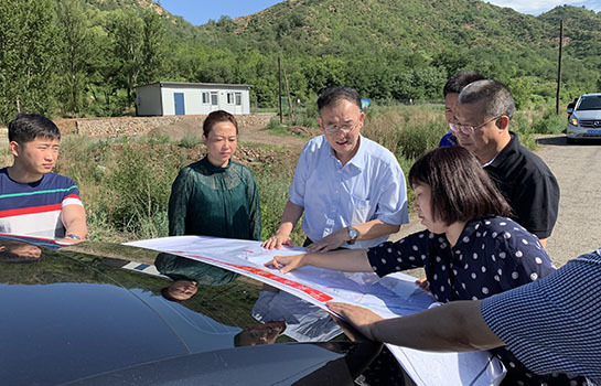 國家郵政局充分發揮“大部制”優勢,爭取到項目新增資金約1900萬元用于平泉市鄉道平廣線改線工程。這是作者 (中) 在現場調研公路建設工作。