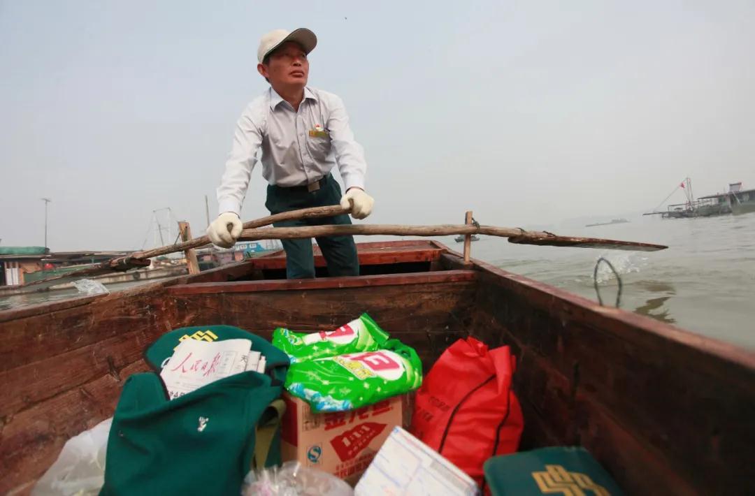 古銅色的皮膚讓唐真亞和漁民別無二致。常年在水上投遞,風里來雨里去,這種生活對唐真亞來說已經稀松平常。