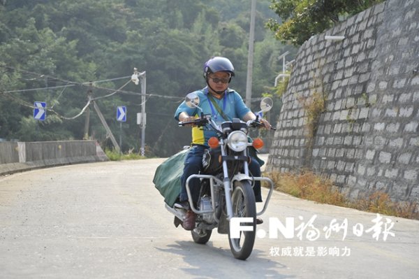 藍(lán)盛金騎行在送錄取通知書的山路上。福州日?qǐng)?bào)記者 鄭帥攝