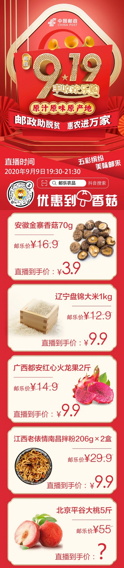 中國郵政919電商節首場預熱直播來啦!