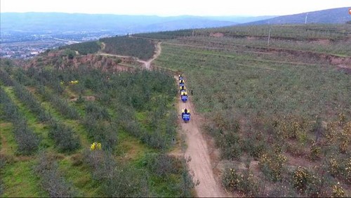 九月的甘肅,微風漸涼,葉子開始枯黃,果實卻一顆顆飽滿的綴滿枝頭。秋風吹過西北甘肅的果林,大地像被換上了一種絢麗的色彩。