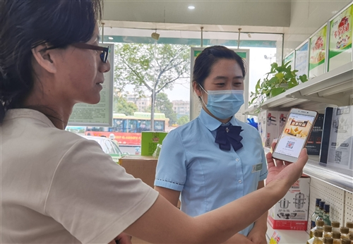 郵政員工引導客戶掃碼成為“郵特惠”會員并體驗“一元購”。