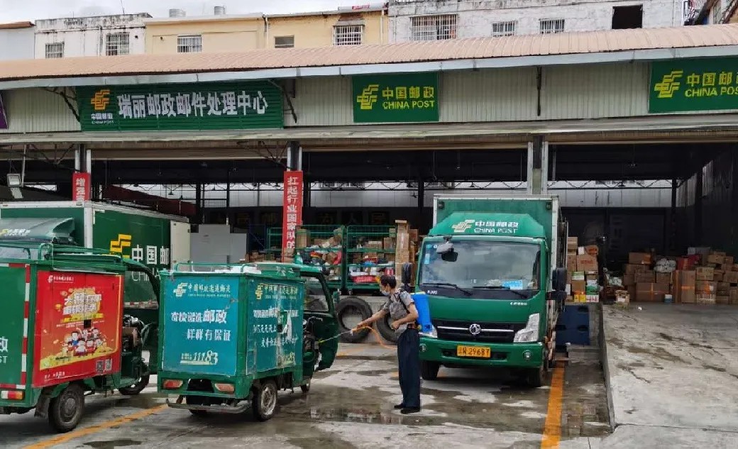 瑞麗市分公司郵件處理中心對進入郵車及生產(chǎn)區(qū)域消毒