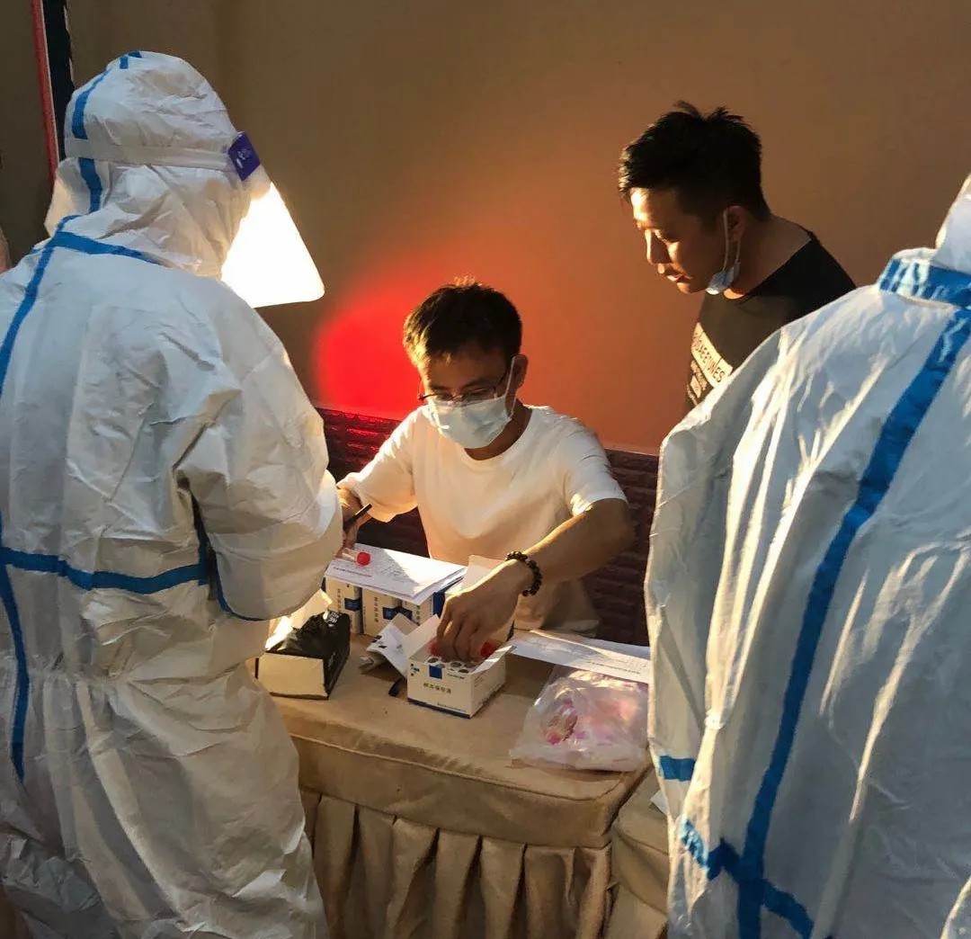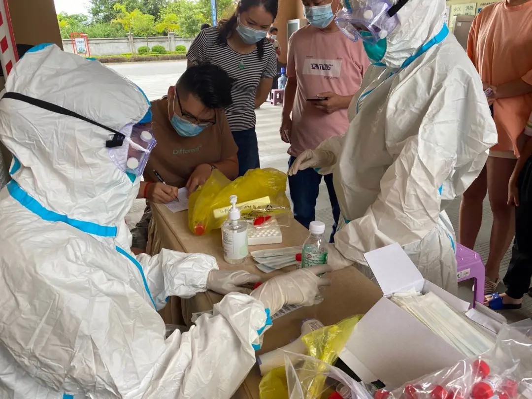 瑞麗市分公司協(xié)助醫(yī)護人員在對網(wǎng)格片區(qū)所有人員做核酸檢測