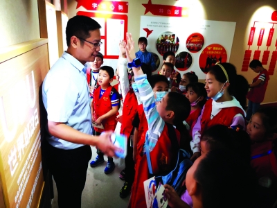 活動一開始,小記者們就在南京郵政集郵與文化傳媒部工作人員儲鈺杰的帶領下,參觀了“百年郵情、綠潤金陵”主題展館。1897年2月2日,南京第一家郵政局在商賈云集的夫子廟誕生,從大清郵政到人民郵政,中國郵政已走過百余年的發展歷程。各時期郵遞員的服飾、郵筒的樣式以及南京第一家郵局模型,館內豐富的視頻、圖片和實物史料,讓小記者們大開眼界。