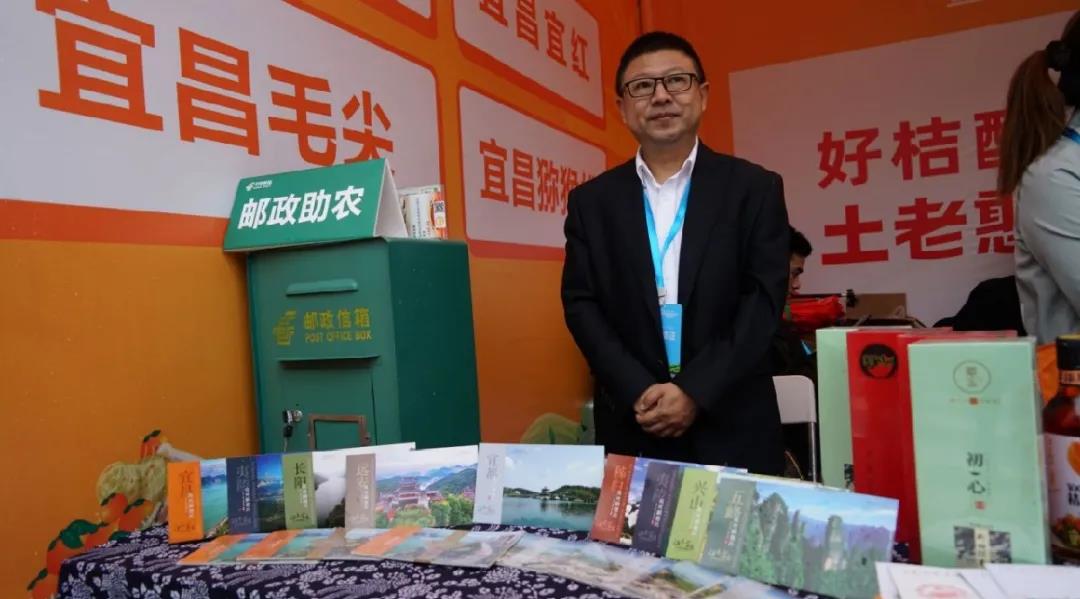 宜都市郵政分公司總經理李軍彥向直播間的觀眾推介著地方特產。宜都市分公司充分發揮主場優勢,有李軍彥出鏡直播帶貨,有臨時郵局服務客商;還有快包團隊積極展業,現場與參展的遠野風食品、三峽神農生物科技等7家企業達成了寄遞合作協議。
