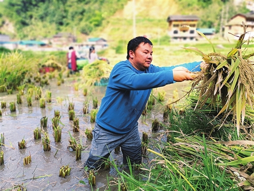 “稻谷熟了,眼看就要霉爛在田里,鄉(xiāng)親們都在爭分奪秒搶收秋糧,希望損失能小一點兒。”9月21日,臺江縣郵政分公司組織主題黨日活動,向黨團員發(fā)起倡議:拿起鐮刀,行動起來,助農(nóng)搶收!大家換好衣服,自備鐮刀、草帽,從各個方向向幫扶村排羊村集中。