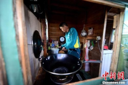 石進全在海上郵局里做飯,這里也是他平常居住的地方。