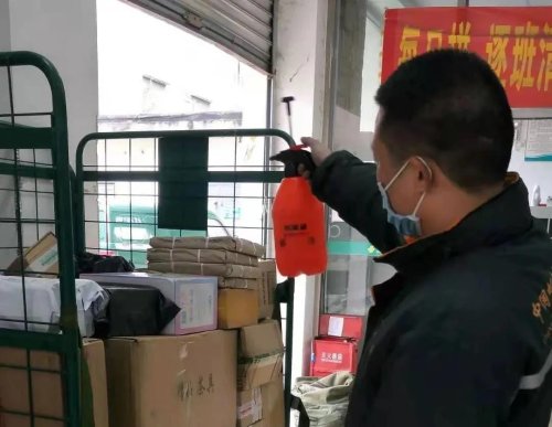 成都郵區(qū)中心局對(duì)郵件處理中心現(xiàn)場(chǎng)以及來自郫都區(qū)郵件進(jìn)行消毒處理