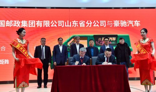 12月12日,中國郵政集團有限公司山東省分公司與山東豪馳智能汽車有限公司在濟南舉行戰略合作簽約儀式。