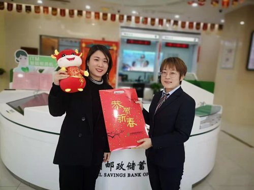 郵儲銀行山東省分行在牛年春節(jié)即將到來之際,為客戶送上暖暖的節(jié)日祝福。圖為淄博市分行在廳堂舉辦"金牛送福”抽獎活動,為來辦業(yè)務(wù)的客戶派送“小金牛”和福字對聯(lián)禮包,營造良好的節(jié)日氛圍。