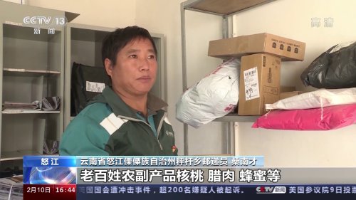 云南省怒江傈僳族自治州稱桿鄉郵遞員 桑南才:今年還是可以的,老百姓農副產品核桃、臘肉、蜂蜜等,今年郵寄出去的將近萬把斤。現在鄉親們管我叫“托厄哈扒” 。