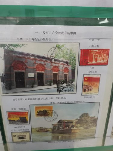 展覽不僅展出了郵票,還包括極限明信片、實寄封、紀念封等,品類多樣。比如這張中共一大嘉興南湖會址極限明信片,其上方的郵票、明信片和郵戳上的圖案高度一致,均表現(xiàn)的是嘉興南湖紅船。