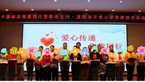 為進一步加強黨支部建設,引導和激勵廣大黨員干部“不忘初心、牢記使命”,郵儲銀行溧陽市支行黨支部、溧陽市平橋小學黨支部于5月11日上午在平橋小學報告廳開展了結對共建活動。這是該行自2016年與平橋小學簽訂結對共建協議以來,連續第6年組織黨員代表、“紅鈴鐺”課堂志愿者走進學校開展共建活動。