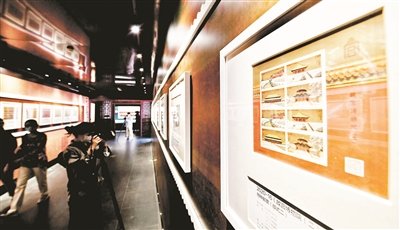 第二單元“美輪美奐”展現紫禁城主體建筑群,輔以郵票設計原稿、雕刻稿、古建影像,再現紫禁城建筑魅力。