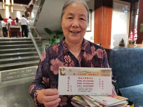 70多歲的朱賢嫣是一名集郵愛(ài)好者。南湖初心郵局成立那天,她一大早就冒雨前來(lái),特地在她親自設(shè)計(jì)的信封上面蓋上紀(jì)念郵戳。