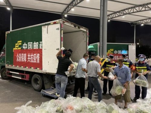 7月25日凌晨2點,滿載著運輸物資的12輛郵政貨車開始陸續安全送達。“有你們幫忙轉駁到下面各個社區的防疫站點,真的節省了我們很多時間。” 祿口街道相關負責人表示,原本這批物資是要求統一送到街道就行了,但是最近兩天人手不夠用,再加上要保障這批蔬菜瓜果到達居民手上的新鮮度,只能辛苦郵政駕駛員幫忙直接送到相應的社區點。