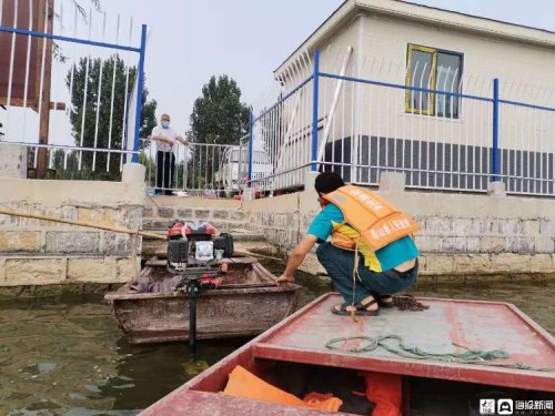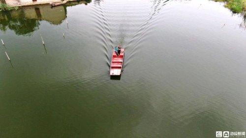 上午10點半,已經被汗水濕透衣服的王少朋回到了丁樓村碼頭。簡單和碼頭上的村民寒暄兩句,甚至都來不及坐下喝口水,王少朋就收起船錨出發了。因為時間不容許他耽擱太久,接下來的四個村子,全都在水上,龔莊和柳溝相距較近,但是王蘇白和建閘距離較遠,從王蘇白村到建閘村,要在湖上航行整整一個半小時。
